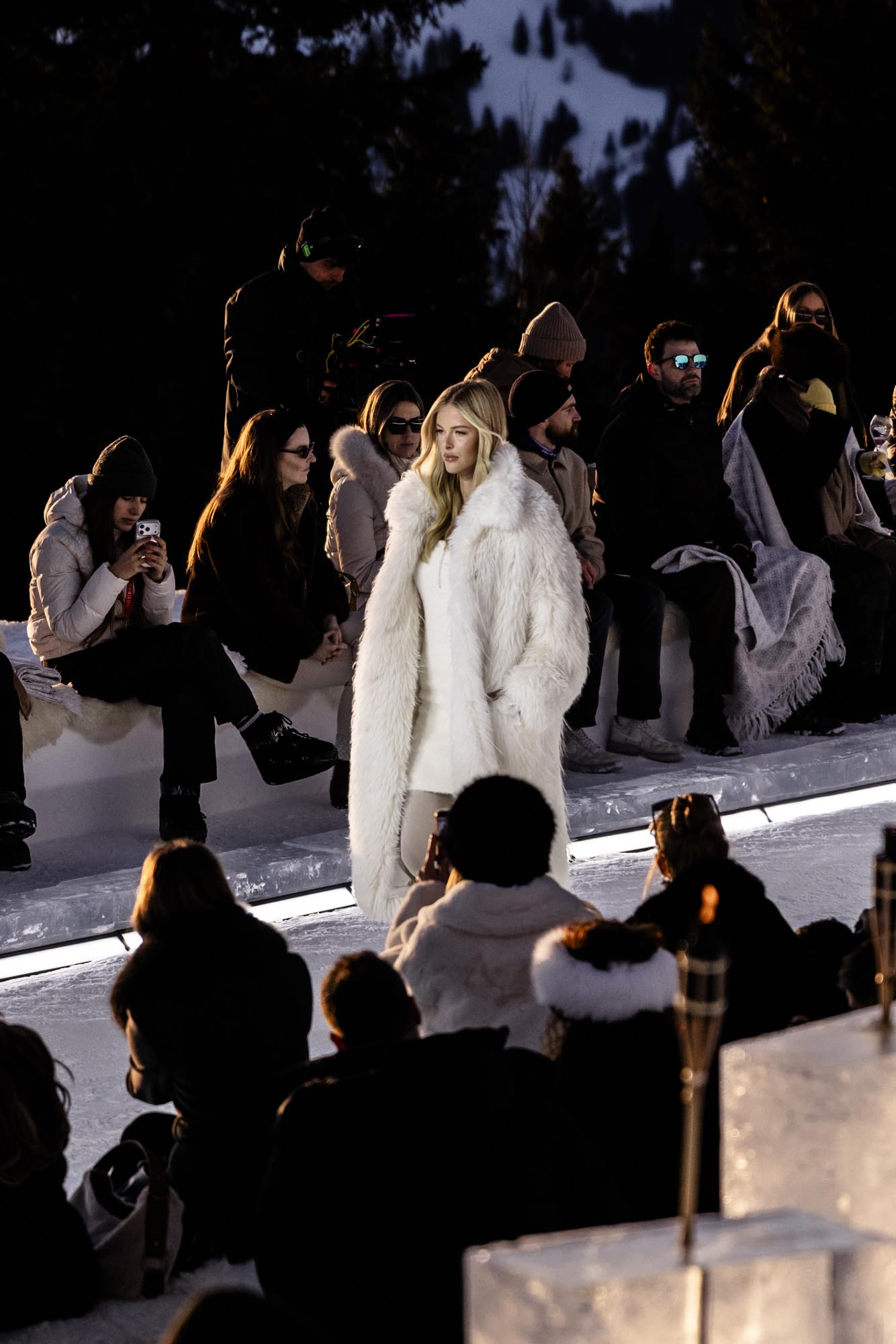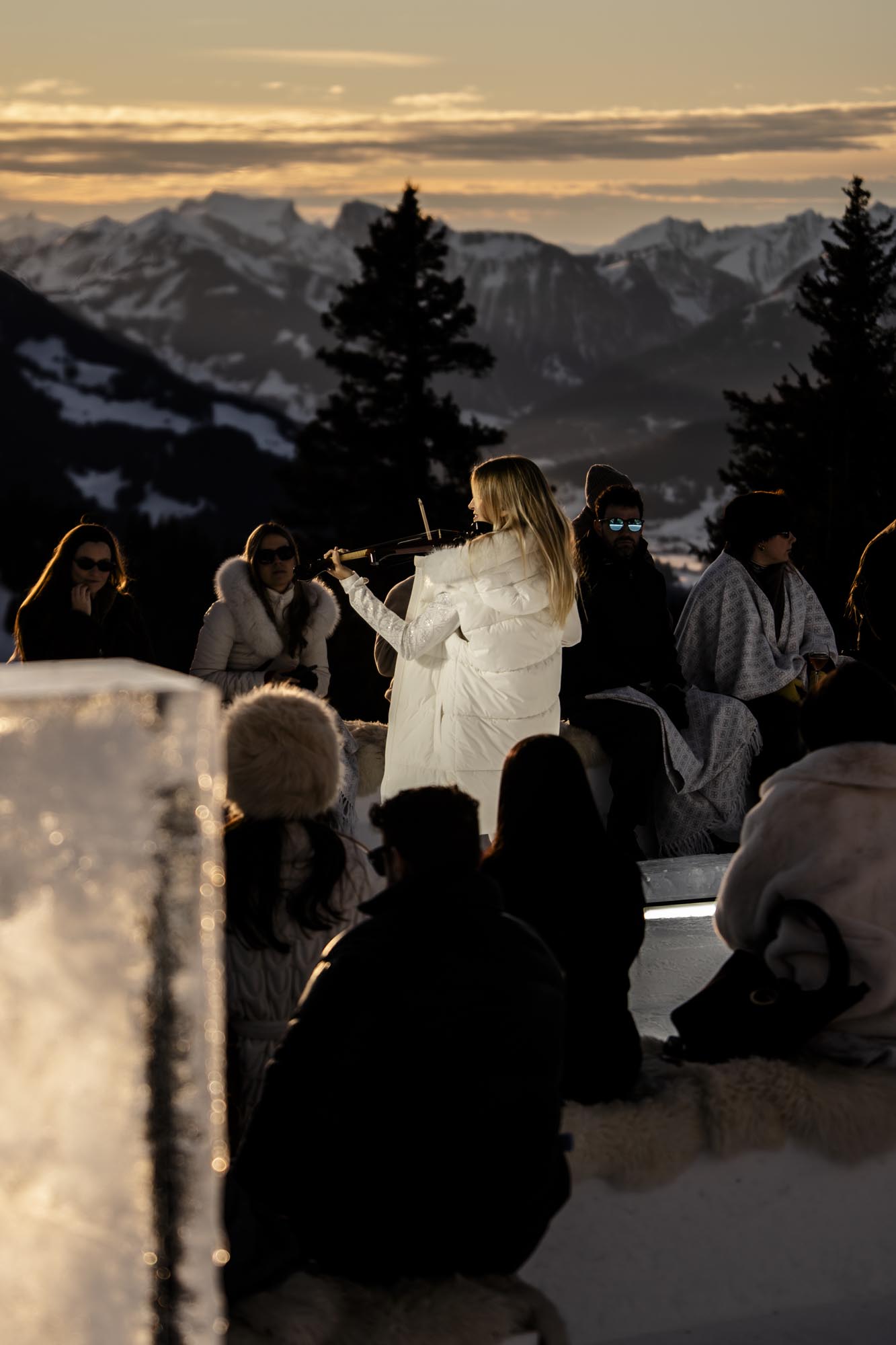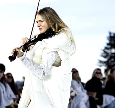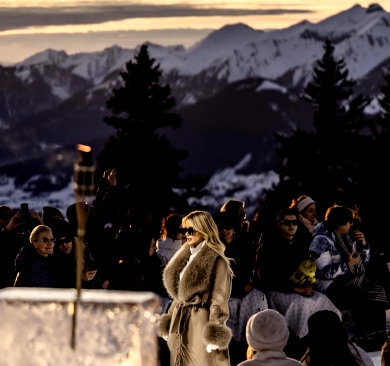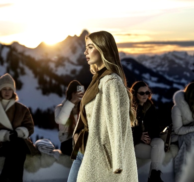 Widowisko rozgrywało się na tle ośnieżonych szczytów i dziewiczego krajobrazu, o złotej godzinie, gdy naturalne światło osiąga największą intensywność. Wysokość, lód, światło i otaczający widok stały się integralnymi elementami narracji, ukazując zdolność marki GUESS do przedstawiania mody w nieoczywistych, zapierających dech w piersiach kontekstach. Zachodzące słońce płynnie przechodziło w zmierzch, potęgując emocjonalny wymiar wydarzenia, zwieńczonego poruszającym występem skrzypaczki Laury Zimmermann, który zamienił moment we wciągające, kinowe przeżycie.