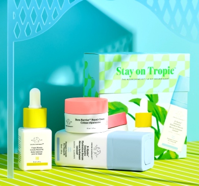 Dzięki zestawowi do pielęgnacji twarzy The Coast Is Clear marki Drunk Elephant możesz skorzystać z kompleksowego wieczornego rytuału pielęgnacyjnego (w tym wielkoformatowego kremu nawilżającego Lala Retro!), aby po przebudzeniu uzyskać gładszą, bardziej miękką i doskonale odżywioną skórę. Żel do mycia twarzy Beste No. 9 usuwa wszelkie ślady makijażu, nadmiaru sebum i innych zanieczyszczeń nagromadzonych w ciągu dnia, serum na noc T.L.C. Framboos w widoczny sposób przywraca teksturę ziemistej cerze z zatkanymi porami, krem Lala Retro zapewnia optymalne nawilżenie niezależnie od wieku, a balsam do oczu Ceramighty poprawia elastyczność skóry i redukuje oznaki zmęczenia wokół oczu.