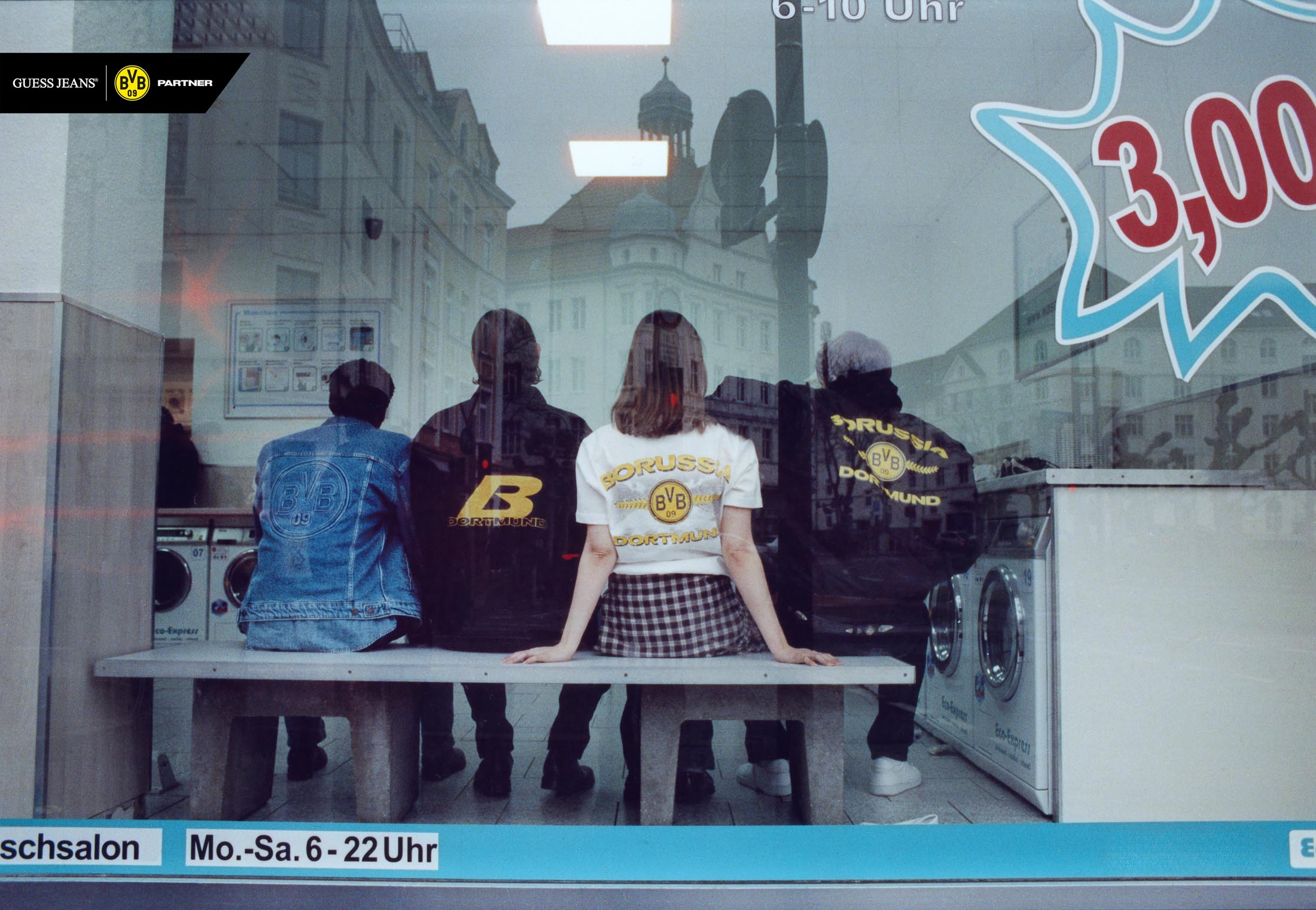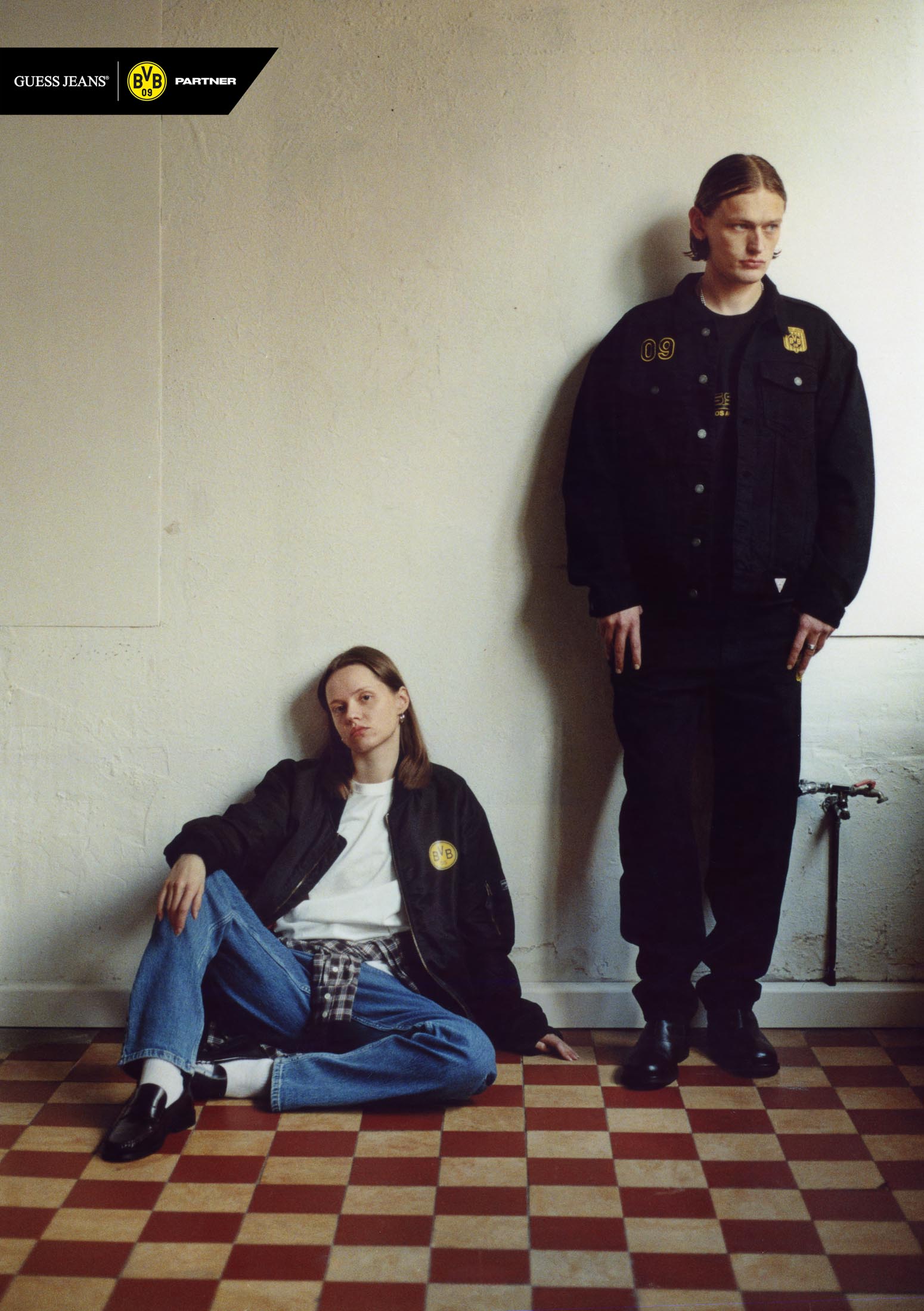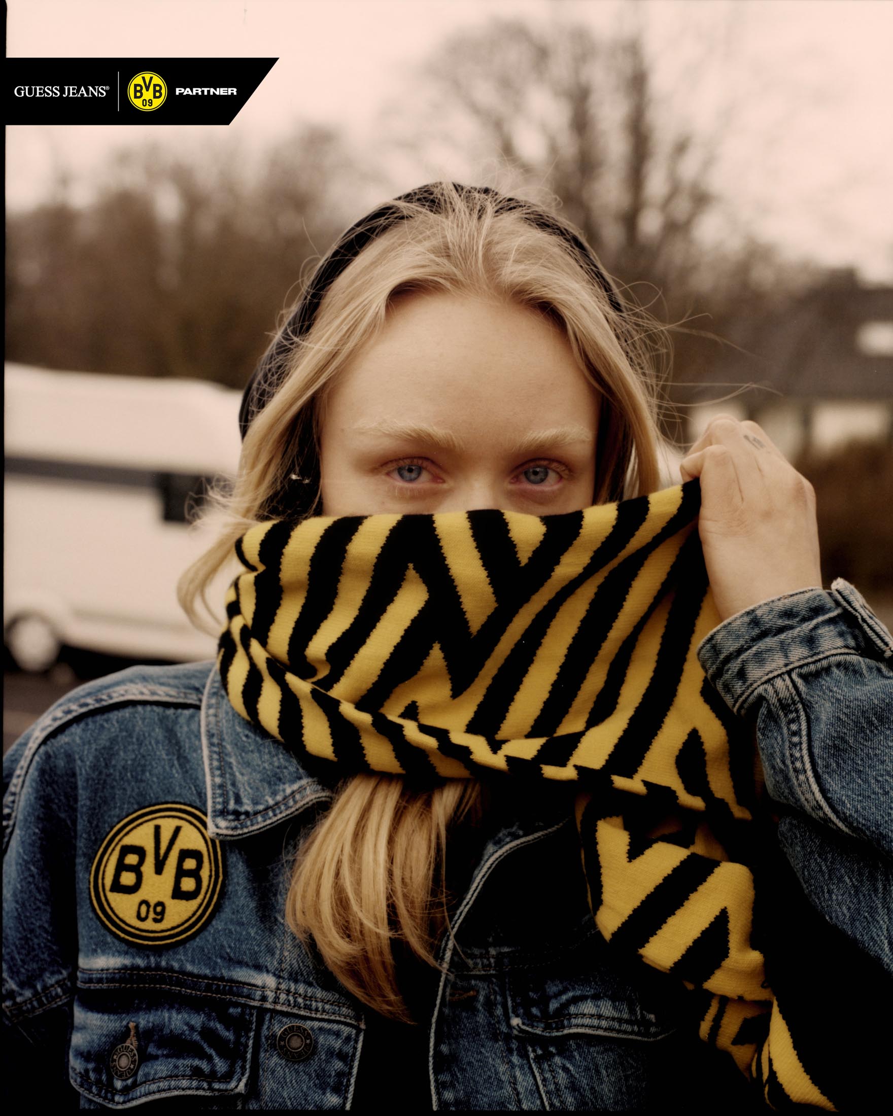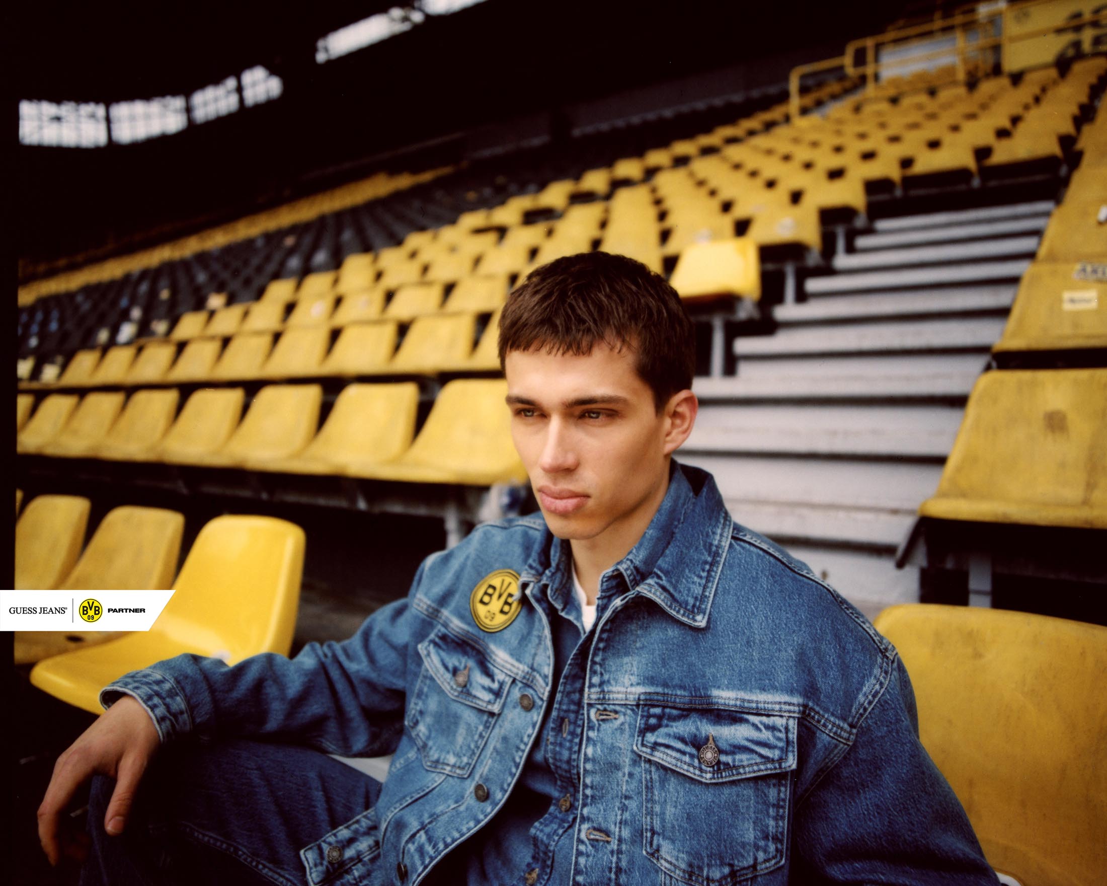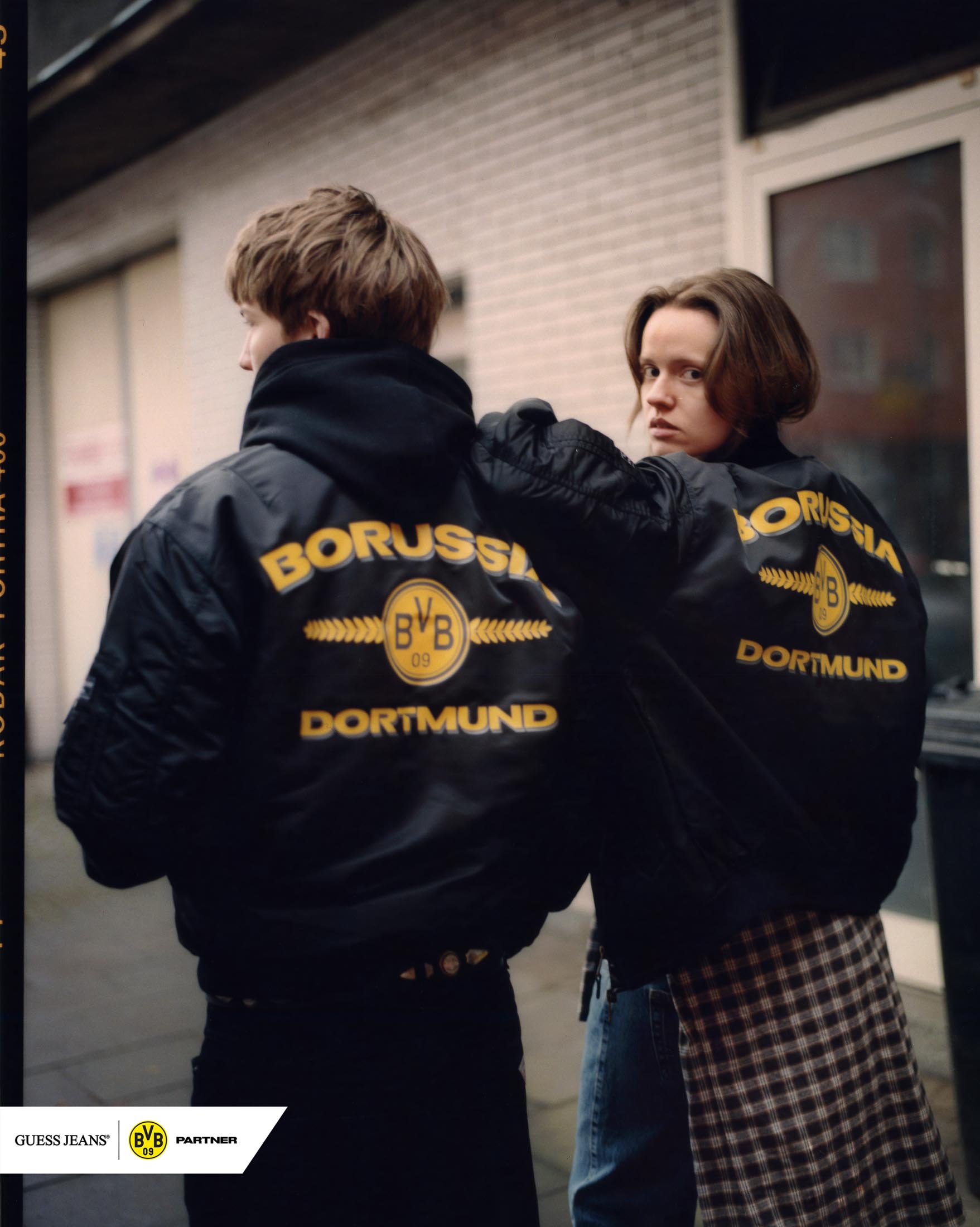 Kampania towarzysząca premierze kolekcji pokazuje denim jako integralny element piłkarskiej kultury Dortmundu. Zdjęcia powstały na ulicach miasta, w lokalnych pubach i na dobrze znanych trasach prowadzących na mecze, ukazując, jak denim ewoluował od symbolu lojalności po wyraz indywidualności i tożsamości. Bohaterami kampanii są prawdziwi mieszkańcy Dortmundu i kibice, których osobista więź z BVB ożywia kolekcję, łącząc wizję projektową GUESS JEANS z energią miasta.