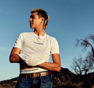 „To naprawdę surrealistyczne. GUESS JEANS to marka o kultowym dziedzictwie, więc możliwość stania się częścią tej historii jest czymś wyjątkowym. Uwielbiam jeansy - najbardziej te z efektem znoszenia, wyglądające jakby miały już swoją historię. Ekscytuje mnie to, jak ludzie odbiorą tę kolekcję i jak ją zinterpretują - jak wniosą do niej swój styl i energię.” – mówi Evan Mock.