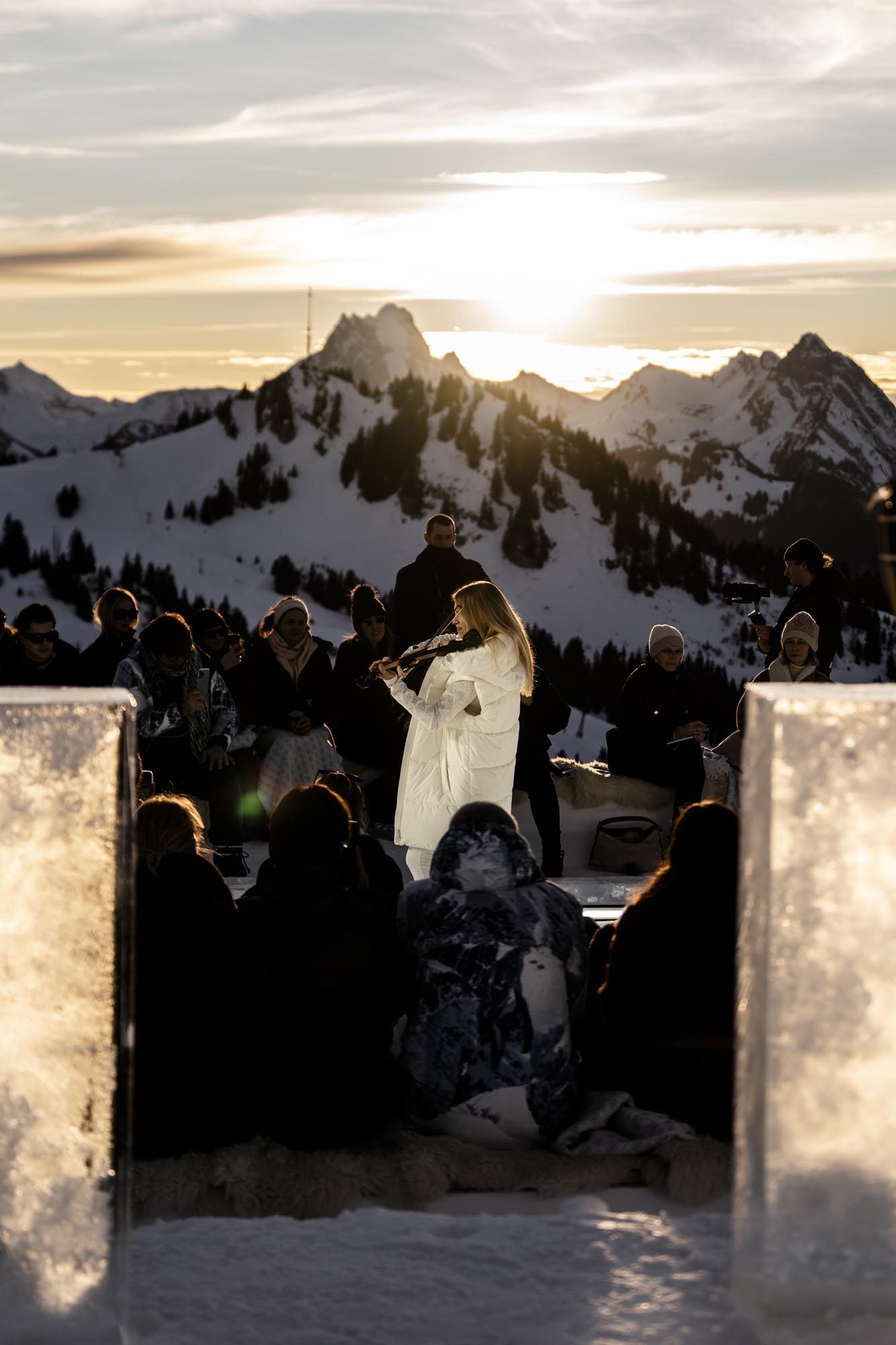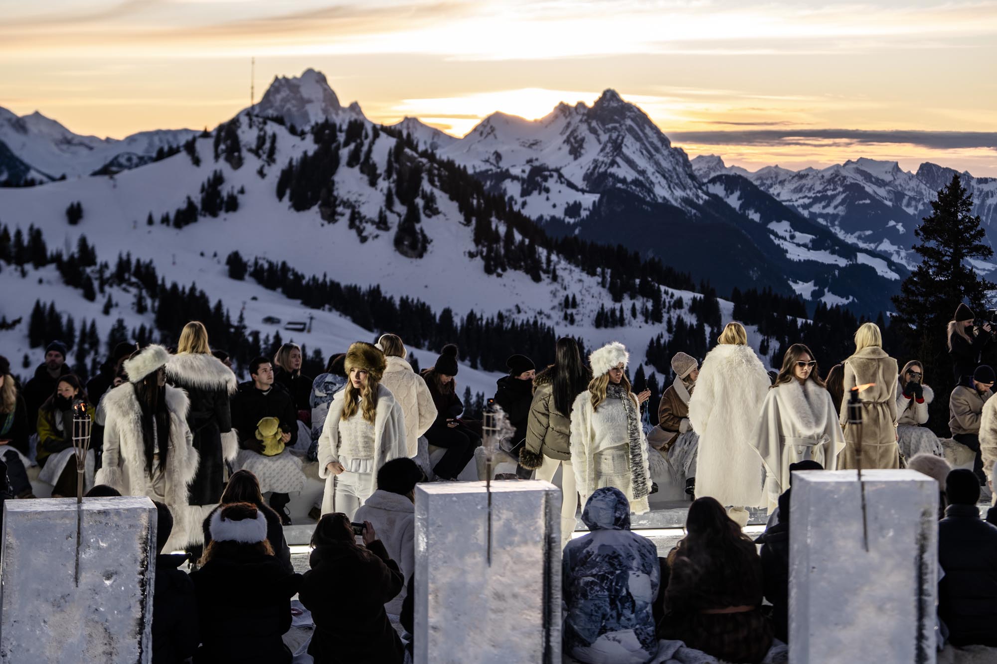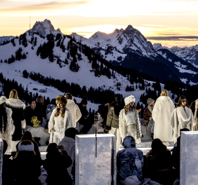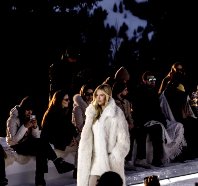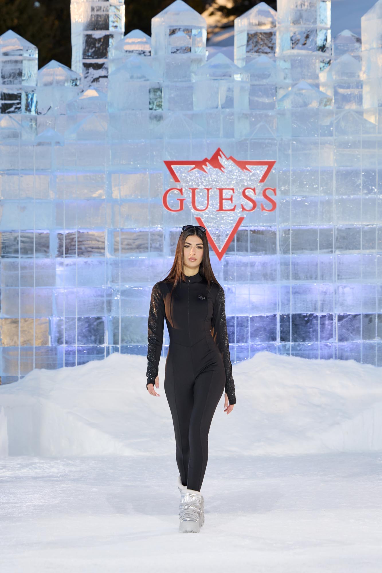 Widowisko rozgrywało się na tle ośnieżonych szczytów i dziewiczego krajobrazu, o złotej godzinie, gdy naturalne światło osiąga największą intensywność. Wysokość, lód, światło i otaczający widok stały się integralnymi elementami narracji, ukazując zdolność marki GUESS do przedstawiania mody w nieoczywistych, zapierających dech w piersiach kontekstach. Zachodzące słońce płynnie przechodziło w zmierzch, potęgując emocjonalny wymiar wydarzenia, zwieńczonego poruszającym występem skrzypaczki Laury Zimmermann, który zamienił moment we wciągające, kinowe przeżycie.