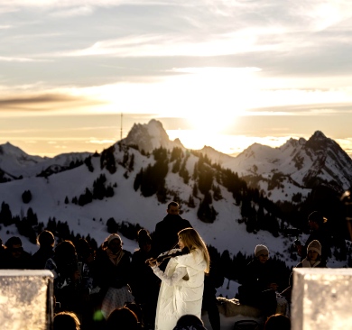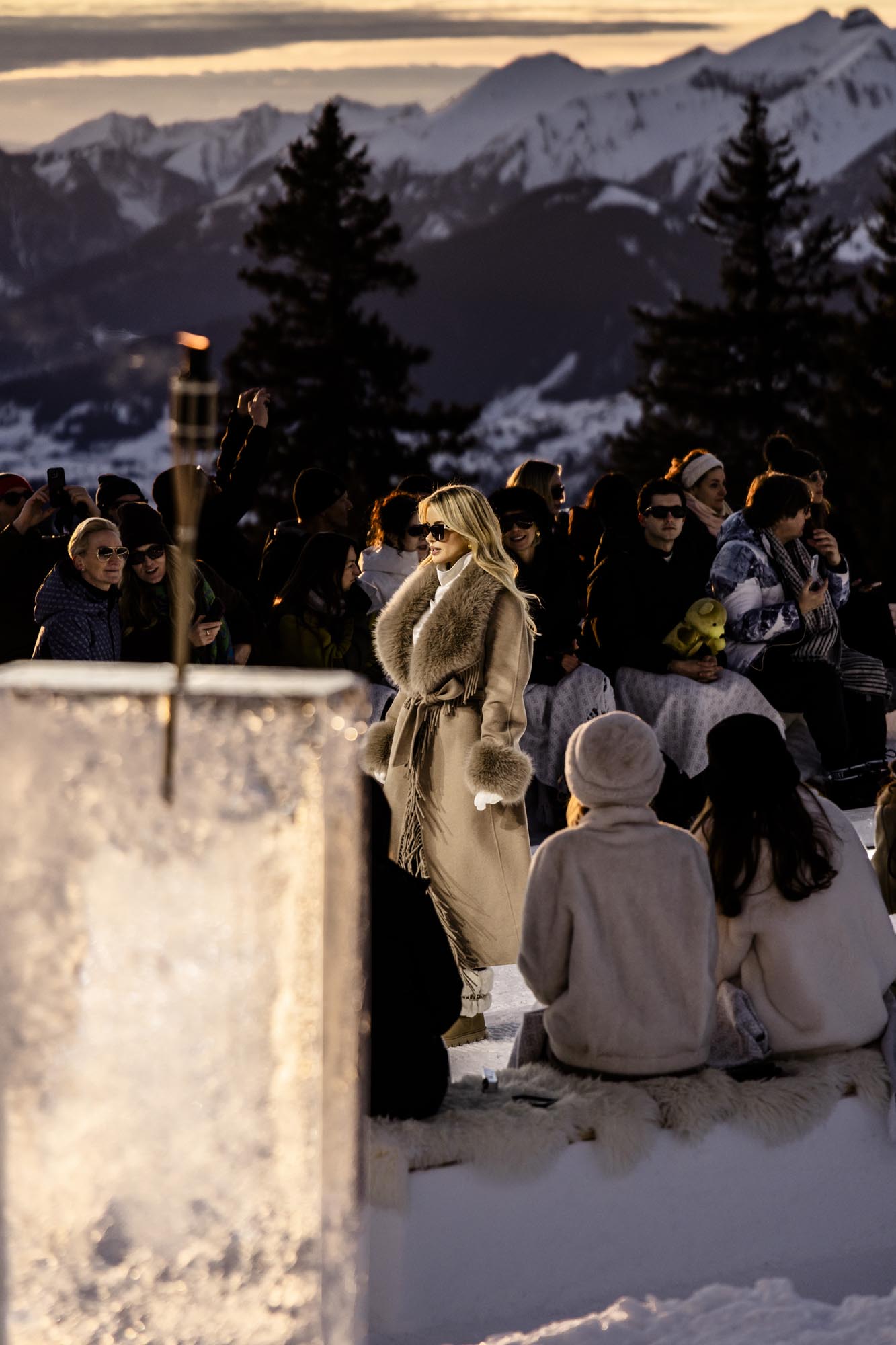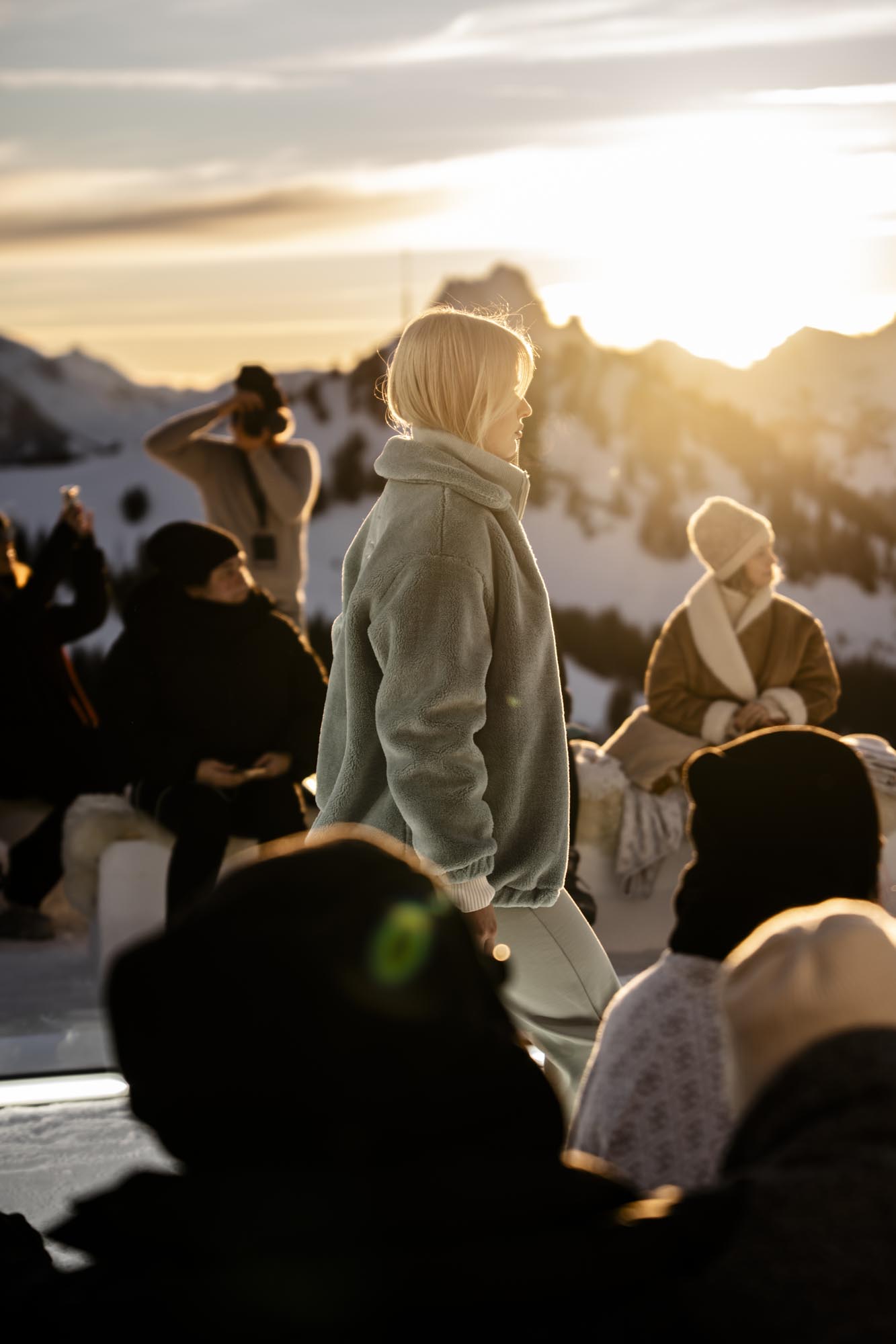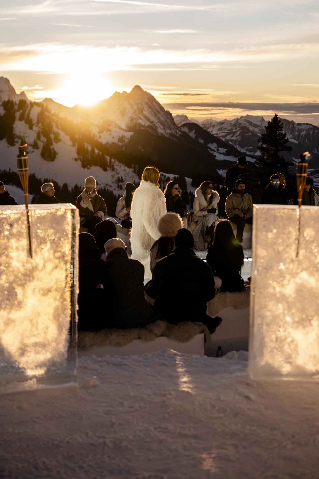 Widowisko rozgrywało się na tle ośnieżonych szczytów i dziewiczego krajobrazu, o złotej godzinie, gdy naturalne światło osiąga największą intensywność. Wysokość, lód, światło i otaczający widok stały się integralnymi elementami narracji, ukazując zdolność marki GUESS do przedstawiania mody w nieoczywistych, zapierających dech w piersiach kontekstach. Zachodzące słońce płynnie przechodziło w zmierzch, potęgując emocjonalny wymiar wydarzenia, zwieńczonego poruszającym występem skrzypaczki Laury Zimmermann, który zamienił moment we wciągające, kinowe przeżycie.